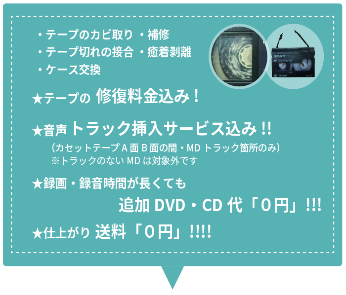 ※カセットテープ79分以上の場合、A面でCD1枚B面でCD1枚の仕上がりです。
